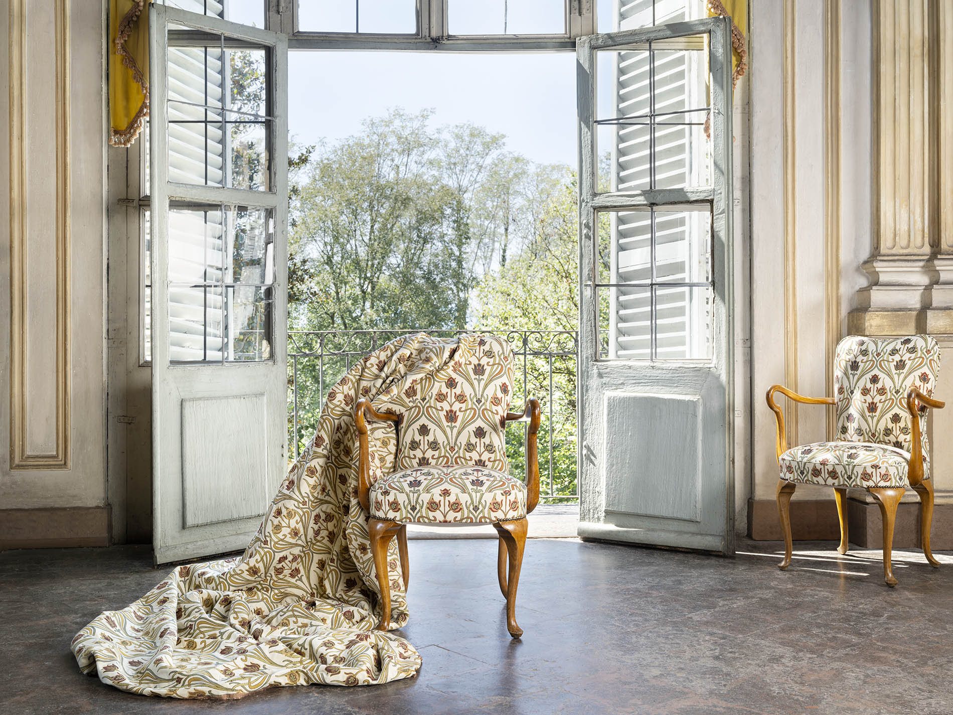 Perfetta fusione tra l’eleganza senza tempo dei tessuti classici e la freschezza di un design contemporaneo. “Arcadia” interpreta con originalità e modernità i motivi liberty e i disegni tipici dei primi del Novecento, arricchendoli con una visione più attuale e vibrante.