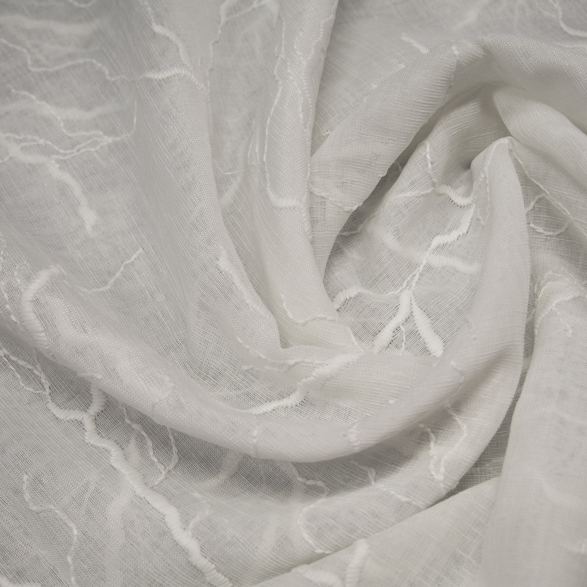 Tenda ricamata a motivo coralli su fondo effetto fiammato.